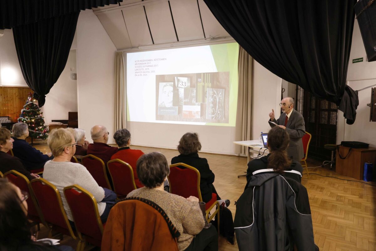 Dr. Széplaki György előadását fényképek és térképek bemutatásával, illetve az egykori Postatelep világát és hangulatát, valamint lakóit felidéző regényrészletei felolvasásával színesítette.