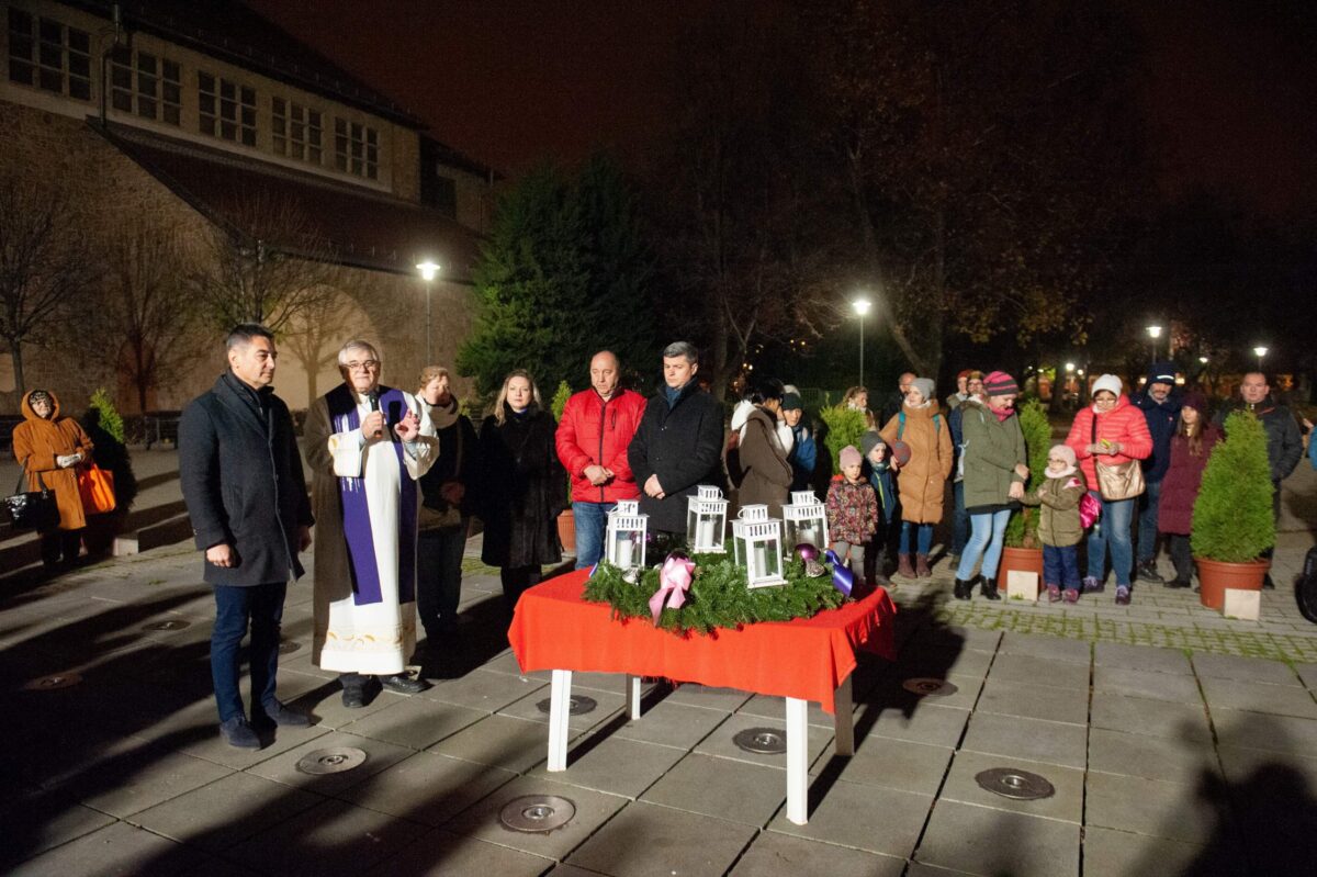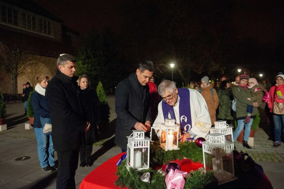 Advent első gyertyája a hitet jelképezi. Ezt a gyertyát pedig idén a Bosnyák téri plébánossal együtt Horváth Csaba polgármester és Hajdu Flórián alpolgármester gyújtották meg.